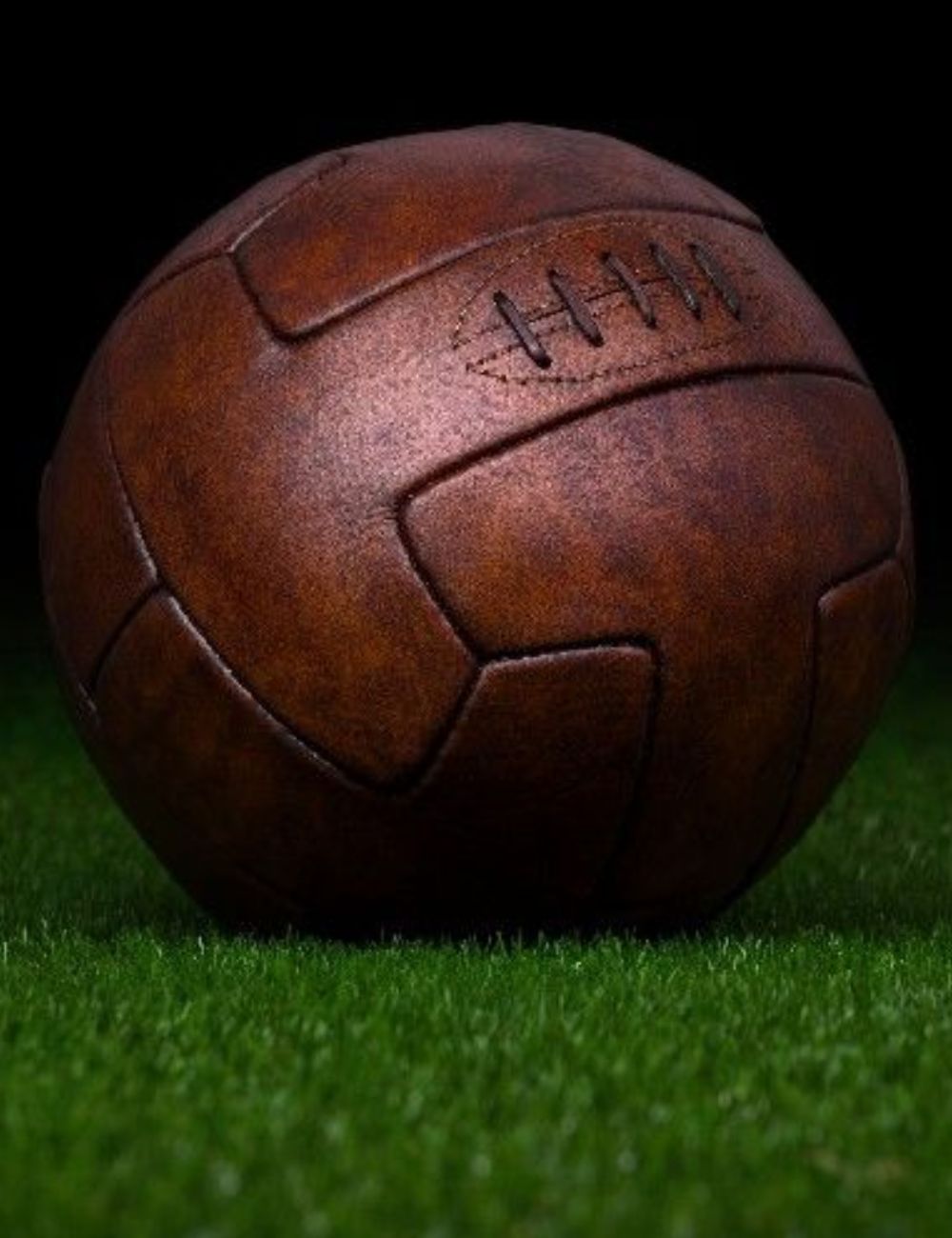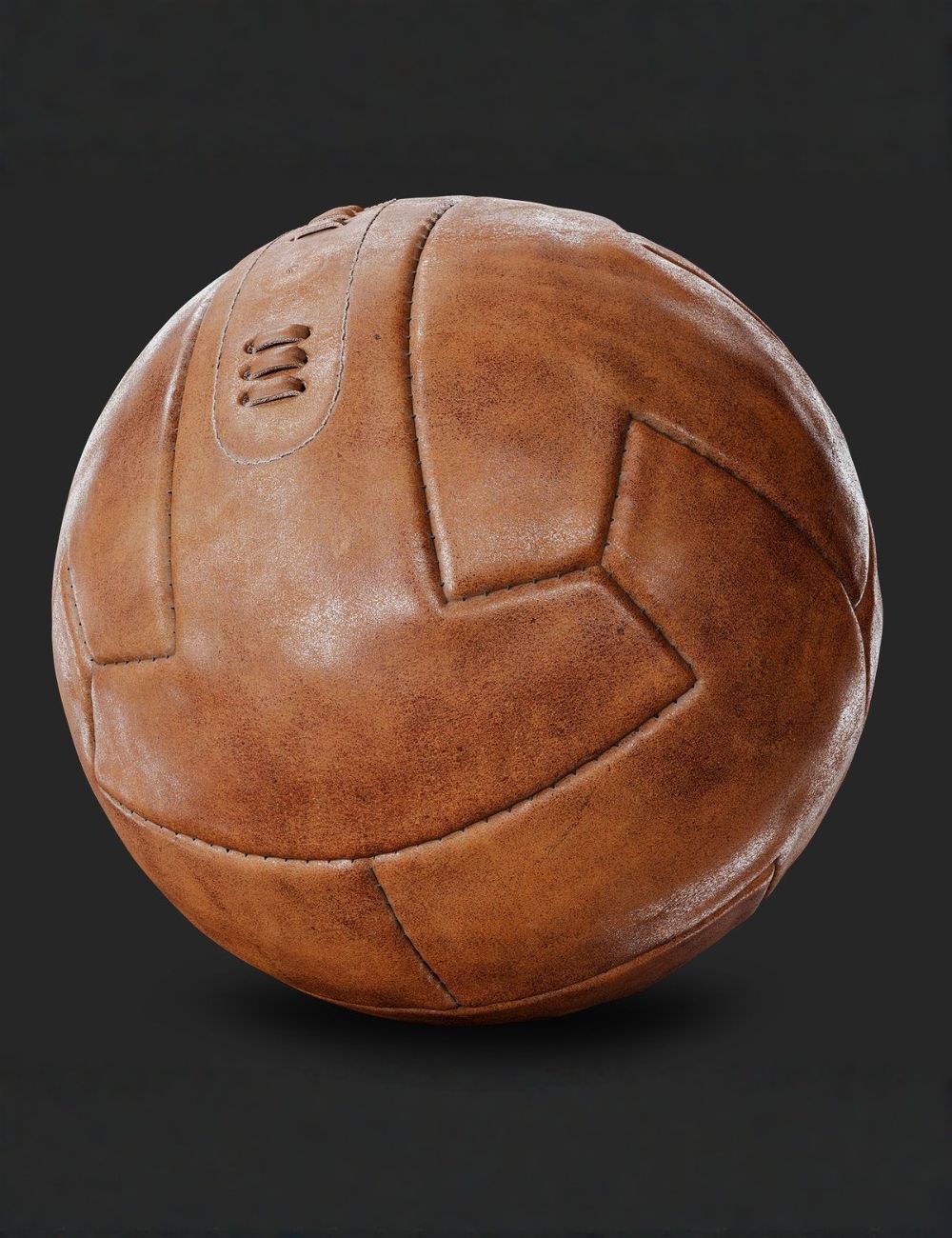 Sim — esta é uma das primeiras bolas do futebol moderno. Muito antes dos materiais sintéticos, o jogo era feito com bolas de couro costuradas à mão, com um detalhe marcante: o cadarço externo. Era por ali que a bola era fechada após ser inflada. Simples. |