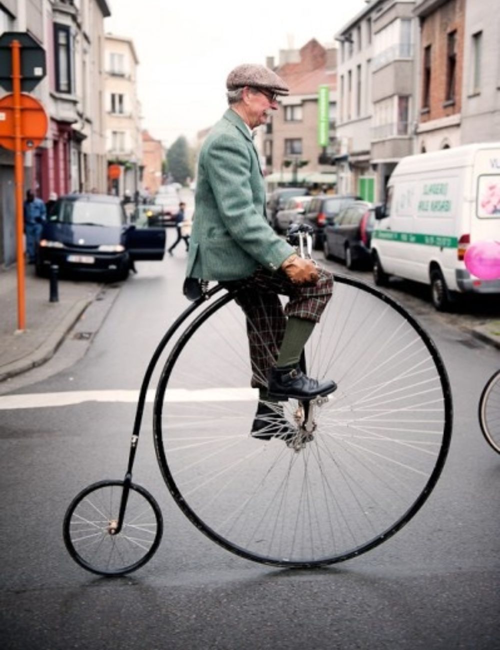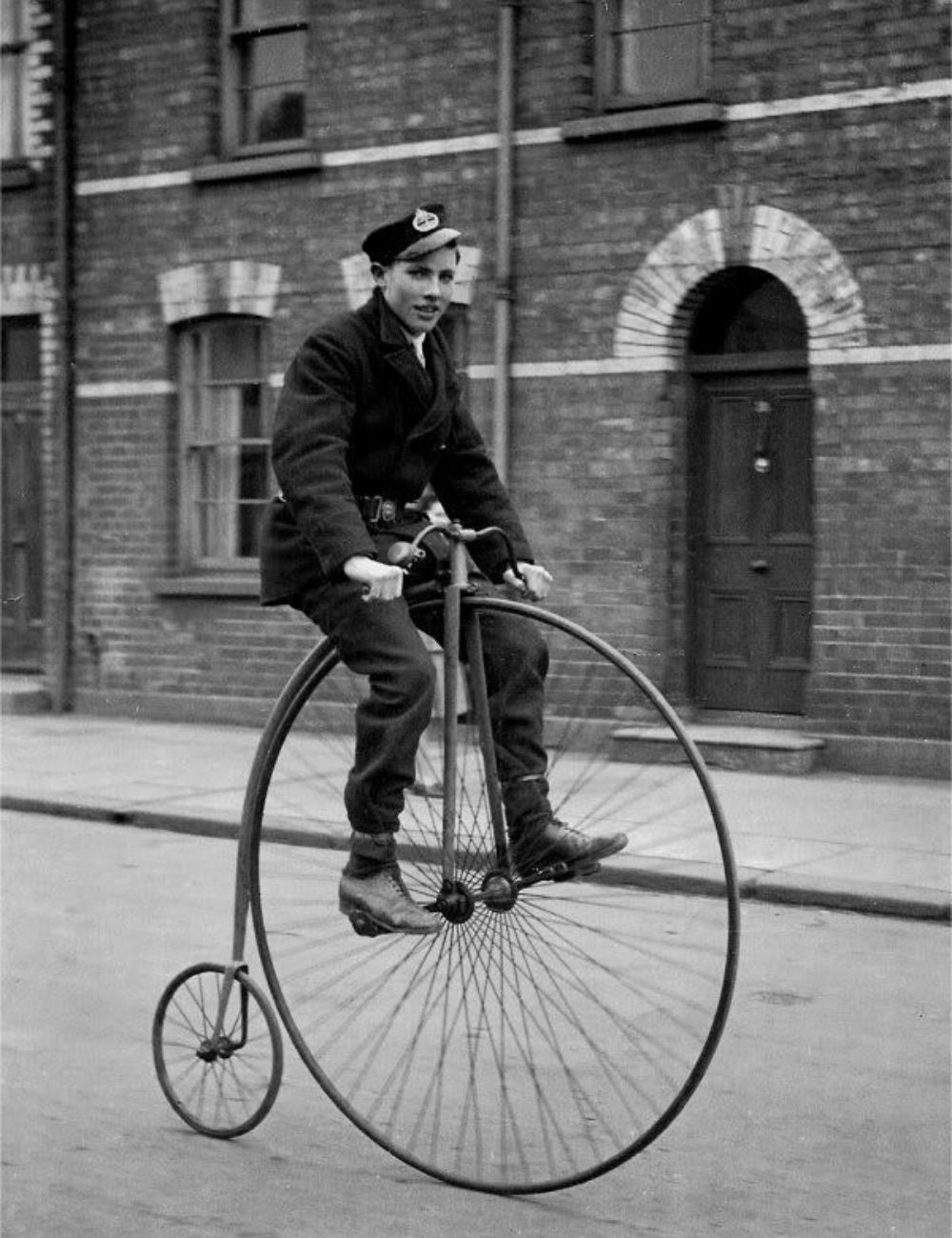 O tamanho da roda dianteira determinava a velocidade da bicicleta. Era popular entre jovens aventureiros da época. Quedas eram comuns devido à altura elevada. Foi substituída por modelos mais seguros com rodas de tamanho similar. |