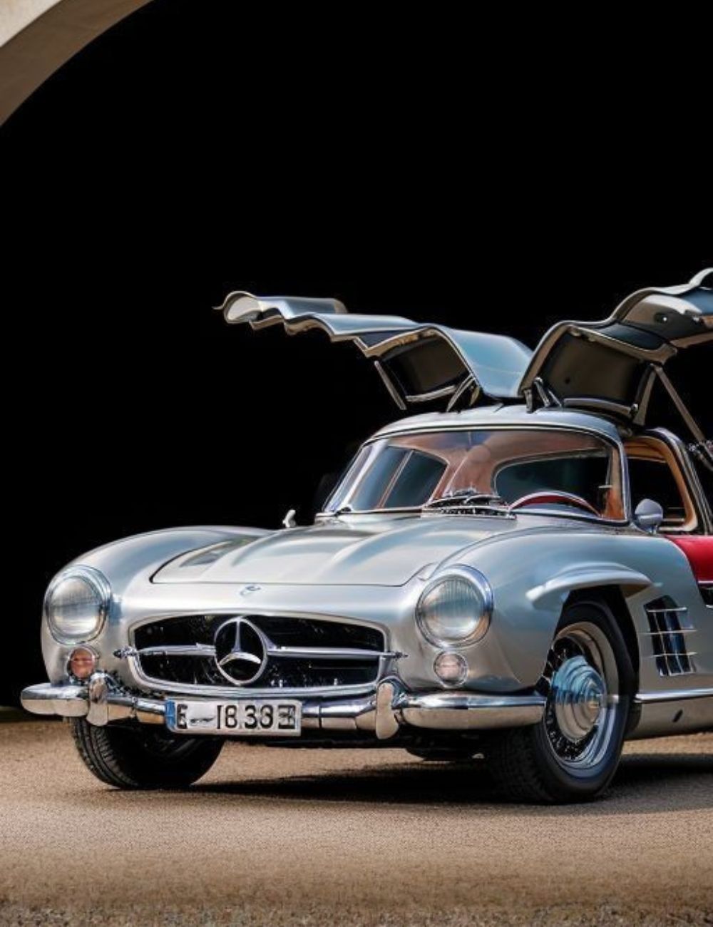 Sim — esse é o lendário 300 SL. Criado pela Mercedes-Benz em 1954, em um período onde inovação automotiva começava a redefinir o que um carro esportivo poderia ser. Não era apenas sobre velocidade. Era sobre provar que engenharia e design podiam caminhar juntos. O 300 SL nasceu inspirado nas pistas e rapidamente se tornou um dos carros mais impressionantes de sua geração. Seu impacto foi imediato. Mas o que realmente chamou atenção foram suas portas. As famosas “asa de gaivota”. Elas não foram criadas apenas por estilo. O chassi tubular extremamente baixo exigia uma solução diferente para a abertura das portas. E assim nasceu um dos elementos mais reconhecidos da história automotiva.